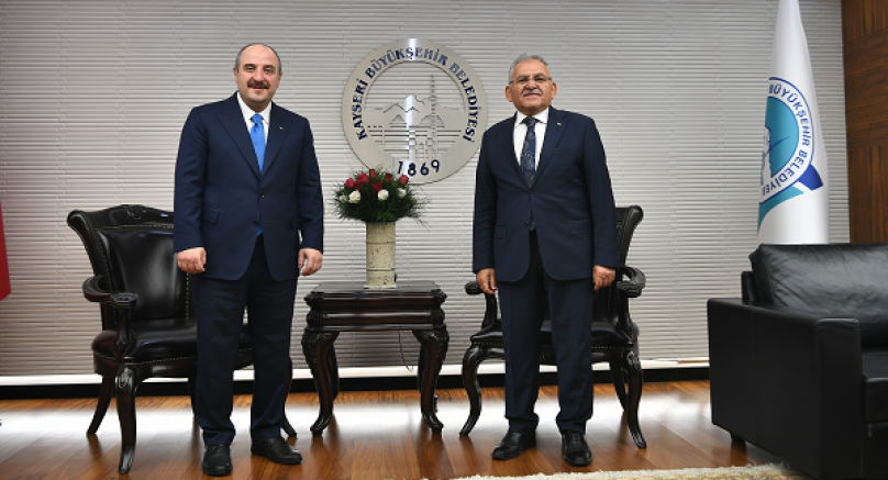 Kayseri Büyükşehir Belediye Başkanı Dr. Memduh Büyükkılıç, bir dizi açılış ve incelemelerde bulunmak üzere kente gelen Sanayi ve Teknoloji Bakanı Mustafa Varank ve beraberindeki heyeti, makamında ağırladı.